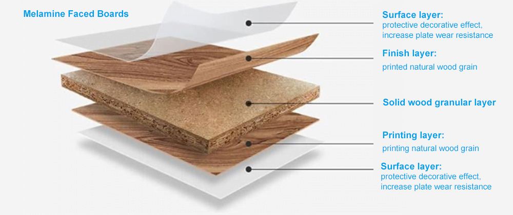 2.Production quality: The production quality mainly depends on the quality of cutting saws, the quality of edge and surface decoration and the quality of plate ports. Generally speaking, the cutting technology of the board is within 0.01 mm per meter. The board that meets the precision requirements has a flat profile and a good angle after cutting, and there will be no tilting of the board after it is made into furniture. Edge and surface decoration mainly depends on whether the glue on the decorative parts is uniform, whether the gap between doors and drawers is too large, generally between 1mm and 2mm, and whether the doors and drawers can be opened and pushed flexibly and freely.